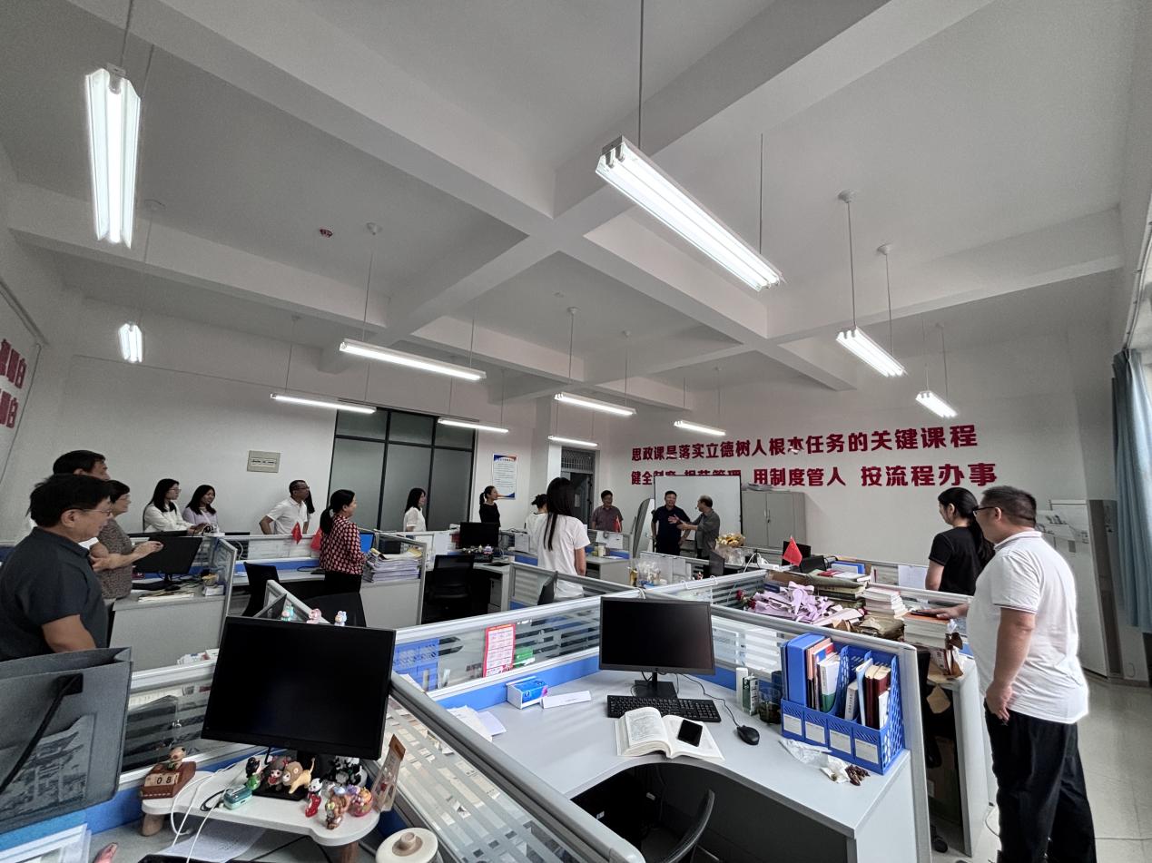 储建新教授一行首先深入马克思主义学院毕昇楼218办公室看望全体思政课教师并向全体思政课教师致以诚挚问候。现场办公会环节,马纪岗阐述了此次会议的目的与意义。马院院长代表马院领导班子和全体教师对储建新书记等领导深入马院开展实地调研并召开现场办公会表示热烈欢迎和诚挚感谢后系统汇报了马院建设的成效、本学期工作计划、开学两周多来学院开展的重点工作、学院建设中存在的难点堵点痛点问题以及拟解决的措施。全体教师围绕个人教学实践中的困惑、教研工作的难点、个人发展的需求等方面逐个发言。