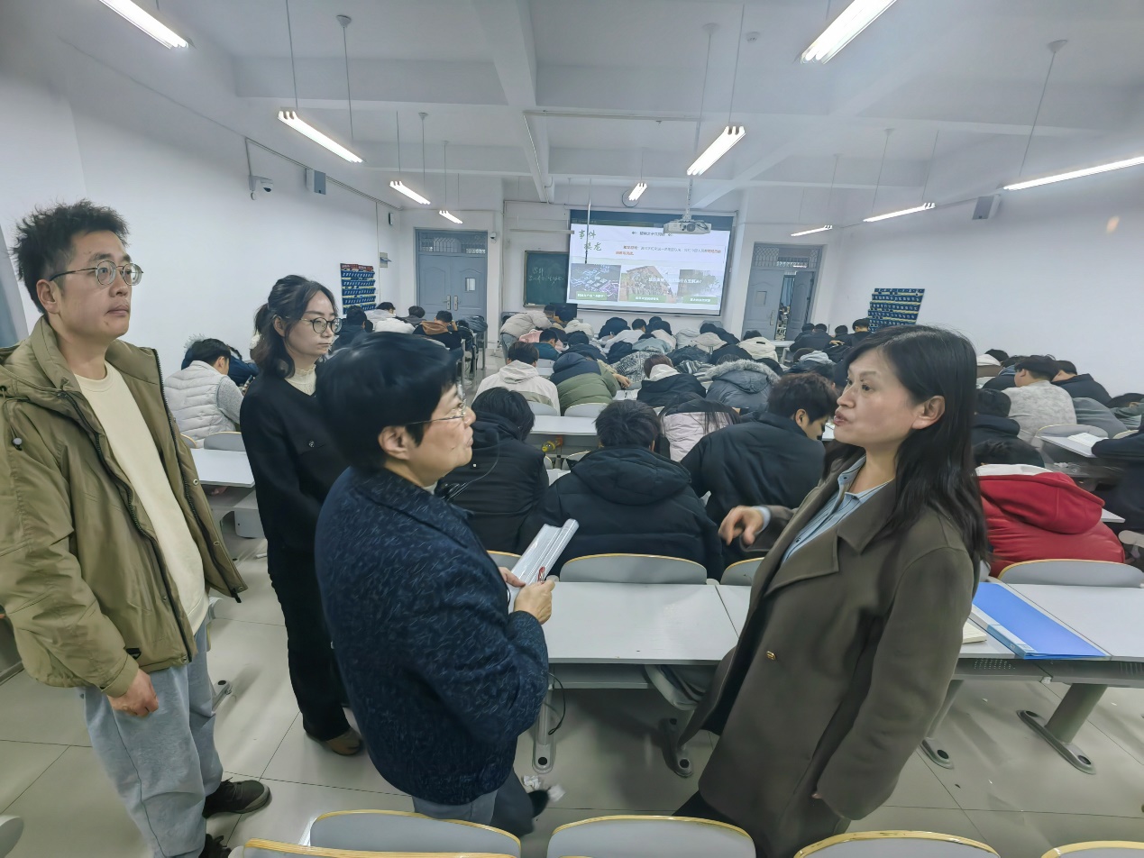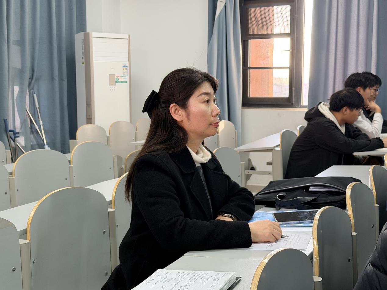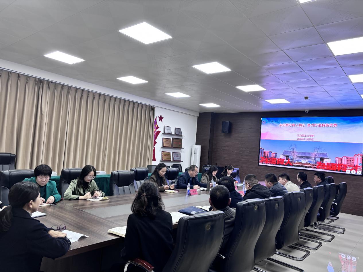 为深入贯彻习近平总书记关于学校思政课建设的重要指示批示精神,按照《中共河南省委教育工委办公室 河南省教育厅办公室关于开展2025年度全省高校秋季学期思政课“大听课 大调研”活动的通知》(教思政函〔2025〕532号)文件要求,11月19日下午,河南理工大学马院党委书记洪振涛教授、河南科技学院马院院长王冰蔚教授、信阳农林学院马院党总支书记王晓明教授、河南应用技术职业学院马院院长张振华教授一行4位专家莅临我校开展听课调研座谈活动。校党委书记储建新教授,校党委副书记、副校长马纪岗教授以及马克思主义学院党政领导班子成员和骨干教师随同听课调研。