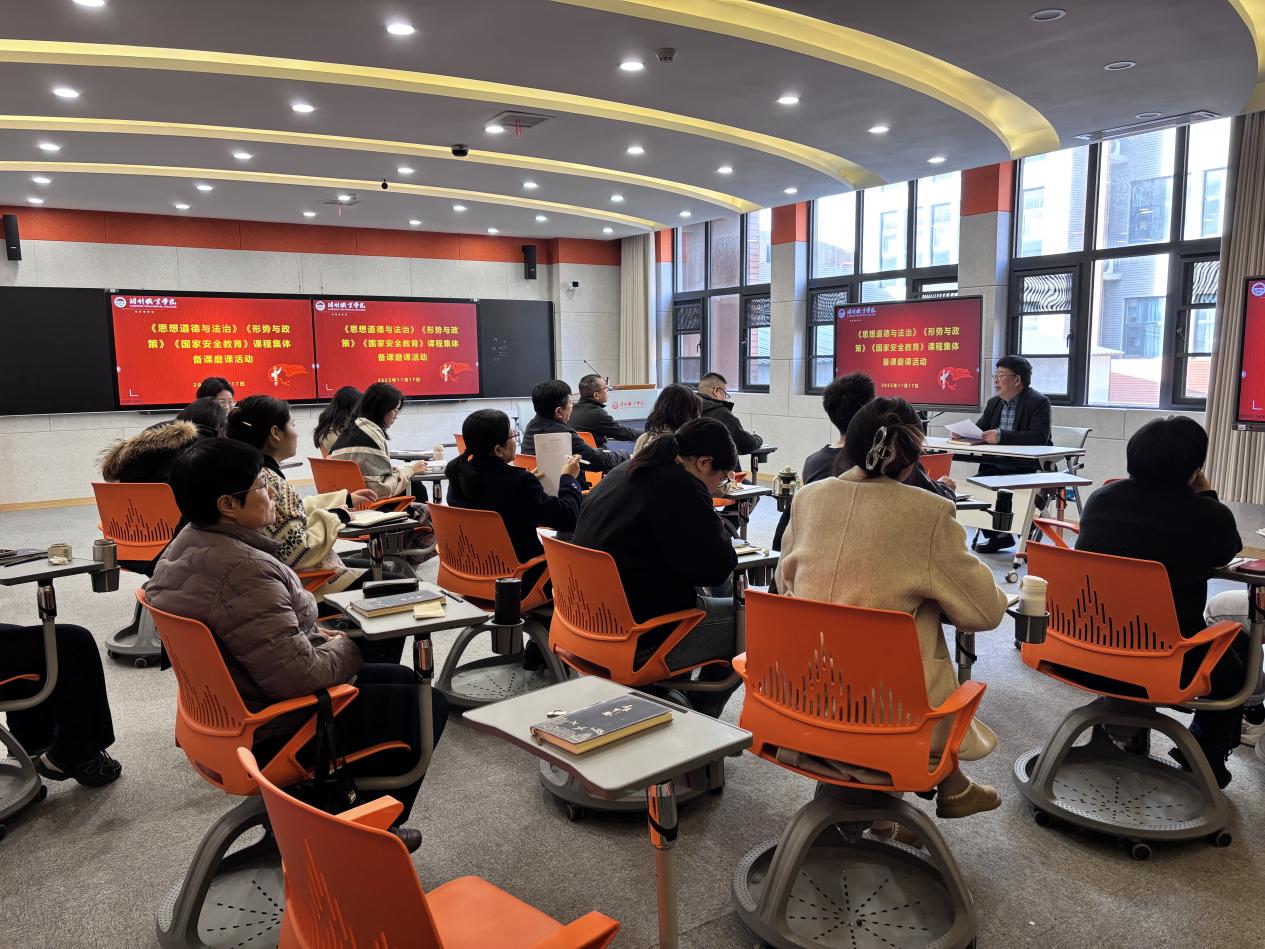 为持续提升思政课程教学质量,促进教师专业成长,强化思政育人实效,11月17日,我院在毕昇楼216教室组织开展《思想道德与法治》《形势与政策》《国家安全教育》三门思政课程集体备课磨课议课活动。校党委副书记、副校长马纪岗教授出席活动并讲话,活动由我院院长主持,全体无课思政教师参加会议。