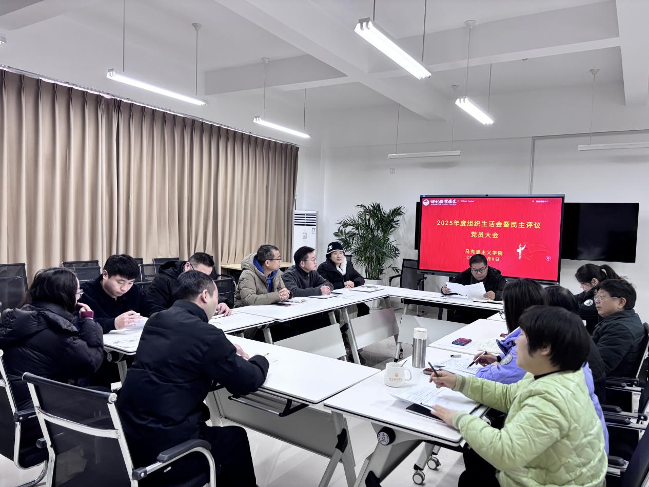 为深入学习贯彻习近平新时代中国特色社会主义思想和党的二十届四中全会精神,严格落实党内政治生活要求,切实加强党员队伍建设,1月9日上午,马克思主义学院党总支在毕昇楼314召开2025年度组织生活会暨民主评议党员大会。会议由马克思主义学院党总支书记王文方主持,全体党员教师参加,校党委书记储建新以普通党员身份全程参与并指导会议。